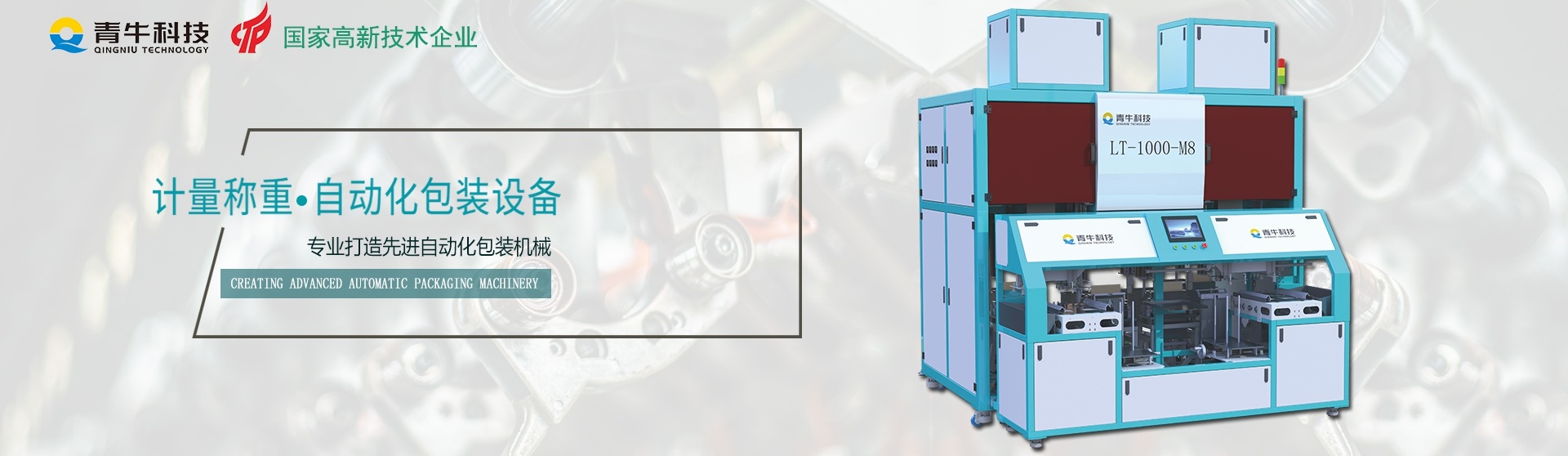 因為專注,所以專業(yè),漳州青牛科技有限公司將專注包裝領域、創(chuàng)造包裝精品、不斷致力于智能化包裝設備的研發(fā)制造,以更智能、高能、可靠的產(chǎn)品來滿足日新月異的市場需求。力爭成為國內(nèi)包裝自動化技術的領頭者,為我國包裝自動化事業(yè)添磚加瓦。